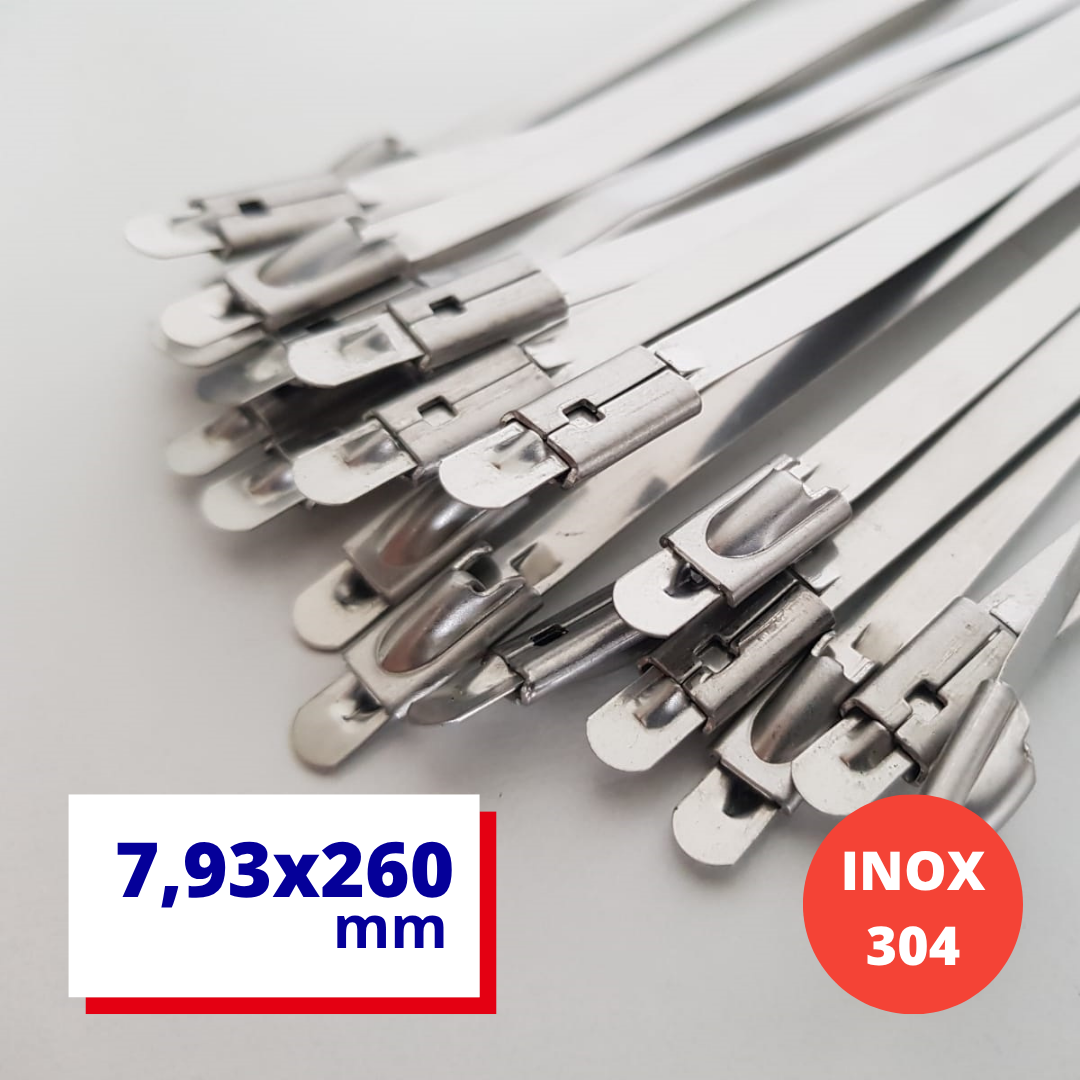 Abraçadeira Zip Tie Auto travante de Aço Inox 304, Sem Revestimento, Largura: 5/16'' (7,93mm) x 0,25, Comprimento: 260mm